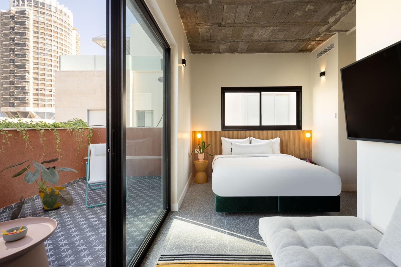 • Brand new hotel room at Savanna Hotel, opened Jan 2024 • Experience our green concept with plenty of plants • Studio apartment with your own kitchen and terrace • Perfectly located on the famous Bugrashov Street • Steps away from top cafes, restaurants, and bars • 2-minute walk to Dizengoff Center and Square • 7 minutes to Bugrashov Beach • 24/7 support & online check-in ❤