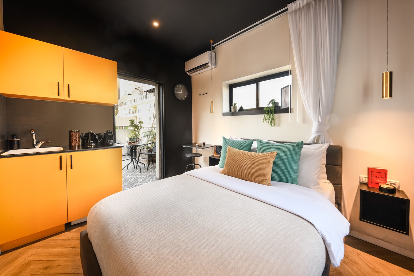 ☀ Brand new studio with a kitchen & private terrace over watching the city ☀ Perfect location at the famous Ben Yehuda Avenue ☀ Right next to the best cafes, restaurants, and bars Tel Aviv can offer. ☀ Supermarkets, shops, ATM, art galleries - 10 steps away ☀ 2 min walk from Bugrashov beach ☀ 24/7 Check-In and Online Support for anything you need